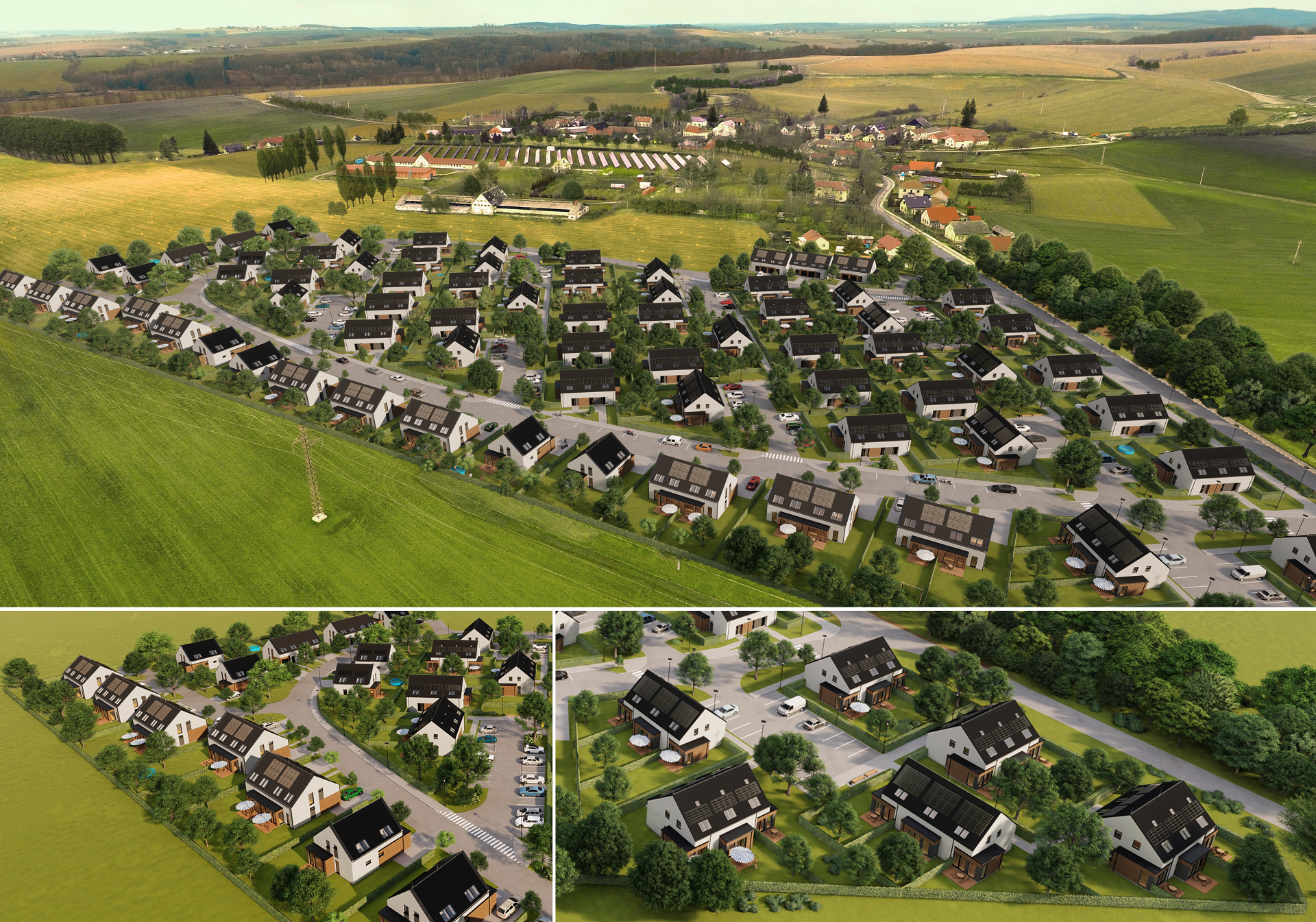 2. Energetická úspornost je dána sendvičovou konstrukcí a propracovaným systémem udržitelných technologií. Součástí každého domu je navíc fotovoltaický systém od společnosti S-Power Energies, jenž primárně slouží k napájení elektrospotřebičů, ale přebytky energie ohřívají vodu.